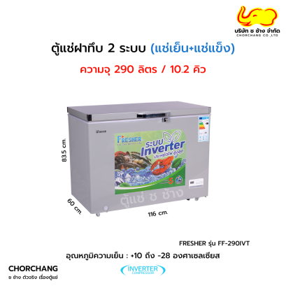 ขนาดตู้ : 116 x 60 x 83.5 ซม. ความจุ : 290 ลิตร/ 10.2 คิว / ตะกร้า : 1 ใบ ระบบควบคุม : Digital Control หน้าจอแสดงอุณหภูมิ ทำความเย็น 2 ระบบ : +10 ถึง -28 องศาเซลเซียส การใช้กระแสไฟฟ้า : 220-240V./ 50 Hz / 130 Watt วัสดุภายในตู้เป็น : PCM White / ตัวตู้สีเทา / มือจับแข็งแรง และมีกุญแจล็อค ประหยัดไฟ 30% ด้วย คอมเพลสเซอร์ Inverter และ board ควบคุม การรับประกัน : ความเย็น 1 ปี / คอมเพรสเซอร์ 5 ปี