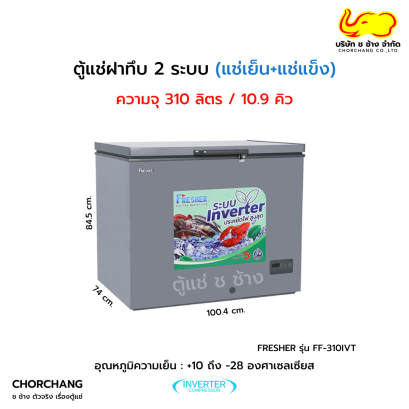 ขนาดตู้ : 100.4 x 74 x 84.5 ซม. ความจุ : 310 ลิตร/ 10.9 คิว / ตะกร้า : 1 ใบ ระบบควบคุม : Digital Control หน้าจอแสดงอุณหภูมิ ทำความเย็น 2 ระบบ : +10 ถึง -28 องศาเซลเซียส การใช้กระแสไฟฟ้า : 220-240V./ 50 Hz / 160 Watt วัสดุภายในตู้เป็น : PCM White / ตัวตู้สีเทาเข้ม / มือจับแข็งแรง และมีกุญแจล็อค ประหยัดไฟ 30% ด้วย คอมเพลสเซอร์ Inverter และ board ควบคุม การรับประกัน : ความเย็น 1 ปี / คอมเพรสเซอร์ 5 ปี