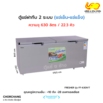 ขนาดตู้ : 175.5 x 79.2 x 84.5 ซม. ความจุ : 630 ลิตร/ 22.3 คิว / ตะกร้า : 2 ใบ ระบบควบคุม : Digital Control หน้าจอแสดงอุณหภูมิ ทำความเย็น 2 ระบบ : +10 ถึง -28 องศาเซลเซียส การใช้กระแสไฟฟ้า : 220-240V./ 50 Hz / 270 Watt วัสดุภายในตู้เป็น : PCM White / ตัวตู้สีเทา / มือจับแข็งแรง และมีกุญแจล็อค ประหยัดไฟ 30% ด้วย คอมเพลสเซอร์ Inverter และ board ควบคุม การรับประกัน : ความเย็น 1 ปี / คอมเพรสเซอร์ 5 ปี