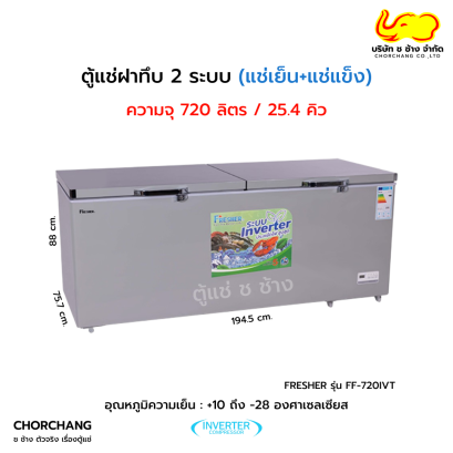 ขนาดตู้ : 175.5 x 79.2 x 84.5 ซม. ความจุ : 720 ลิตร/ 25.4 คิว / ตะกร้า : 2 ใบ ระบบควบคุม : Digital Control หน้าจอแสดงอุณหภูมิ ทำความเย็น 2 ระบบ : +10 ถึง -28 องศาเซลเซียส การใช้กระแสไฟฟ้า : 220-240V./ 50 Hz / 270 Watt วัสดุภายในตู้เป็น : PCM White / ตัวตู้สีเทา / มือจับแข็งแรง และมีกุญแจล็อค ประหยัดไฟ 30% ด้วย คอมเพลสเซอร์ Inverter และ board ควบคุม การรับประกัน : ความเย็น 1 ปี / คอมเพรสเซอร์ 5 ปี