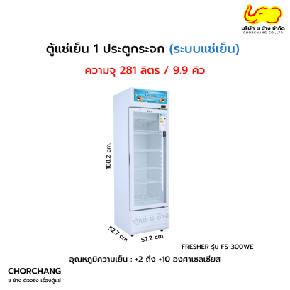 ขนาดตู้ : 57.5 x 52.7 x 188.2 ซม. ความจุ : 281 ลิตร / 9.9 คิว จำนวนชั้นวางสินค้า : 5 ชั้น (ปรับระดับได้) กระแสไฟฟ้า : 220-240V. 50 Hz. / 286 Watt Stopper : ขาปรับสำหรับยึดตู้ ป้องกันการลื่นไหล ความเย็นภายในตู้ : +2 ถึง +10 องศาเซลเซียส ระบบน้ำทิ้ง : ระเหยอัตโนมัติ ไม่ต้องเทน้ำทิ้ง รับประกัน : ความเย็น 1 ปี / คอมเพรสเซอร์ 5 ปี