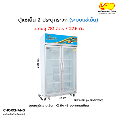 ตู้แช่เย็น 2 บานประตูขอบ Frameless FRESHER รุ่น FR-2FWS5i ความจุ : 27.6 คิว / 781 ลิตร / ประหยัดไฟเบอร์ 5 ขนาดตู้ : 110 x 65 x 200 cm. น้ำหนัก : 125 กก. ระบบ : Digital Control พร้อมหน้าจอแสดงอุณหภูมิ อุณหภูมิความเย็น : +2 ถึง +8 องศาเซลเซียส กระแสไฟฟ้า : 220V. 50 Hz. / 1.3 A. / 270 W. กระจก Low-E 2 ชั้น รักษาความเย็น/ป้องกันความร้อน ระบบ : No frost (ป้องกันการจับตัวของน้ำแข็ง) ระบบน้ำทิ้ง : มีถาดรองน้ำทิ้ง / ชั้นวาง 10 ชั้น การรับประกัน : คอมเพรสเซอร์ 7 ปี / ความเย็น 1 ปี