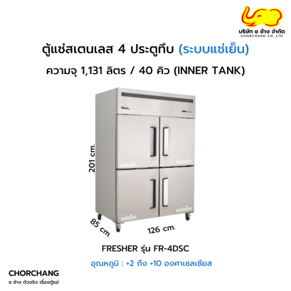 ขนาดความจุ : 1,131 ลิตร / 40 คิว (INNER TANK) ขนาดตู้ : 126 x 85 x 201 ซม. / น้ำหนัก 160 กก. (Net) ความเย็น : อุณหภูมิ +2 ถึง +10 องศา (ได้อย่างแม่นยำ) การใช้กระแสไฟฟ้า : 220-240V./ 50 Hz / 440 Watt ระบบ : Digital control หน้าจอแสดงอุณหภูมิ ระบบทำความเย็น : ลมเป่าทำความเย็น Ventilate (No Frost) ระบบน้ำทิ้ง : ระเหยน้ำอัตโนมัติ / วัสดุ : สเตนเลส เกรด 304 การรับประกัน : ความเย็น 1 ปี / คอมเพรสเซอร์ 5 ปี ระบบ : เหมาะสำหรับแช่เย็นผัก ผลไม้ และวัตถุดิบ เพื่อเตรียมใช้ทำอาหารครัวร้านอาหาร โรงแรม โรงพยาบาลฯ