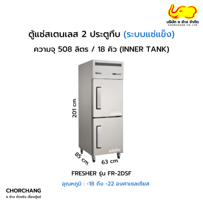 ขนาดความจุ : 508 ลิตร / 18 คิว (INNER TANK) ขนาดตู้ : 63 x 85 x 201 ซม. / น้ำหนัก 100 กก. (Net) ความเย็น : อุณหภูมิ -18 ถึง -22 องศา (ได้อย่างแม่นยำ) การใช้กระแสไฟฟ้า : 220-240V./ 50 Hz / 600 Watt ระบบ : Digital control หน้าจอแสดงอุณหภูมิ ระบบทำความเย็น : ลมเป่าทำความเย็น Ventilate (No Frost) ระบบน้ำทิ้ง : ระเหยน้ำอัตโนมัติ / วัสดุ : สเตนเลส เกรด 304 การรับประกัน : ความเย็น 1 ปี / คอมเพรสเซอร์ 5 ปี ระบบ : เหมาะสำหรับแช่เย็นผัก ผลไม้ และวัตถุดิบ เพื่อเตรียมใช้ทำอาหารครัวร้านอาหาร โรงแรม โรงพยาบาลฯ