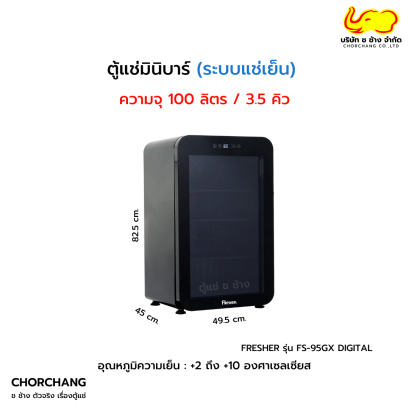 ความจุ : 3.5 คิว / 100 ลิตร ขนาดตู้ : 56x49.5x86.5 cm. น้ำหนัก 30 กก. / ชั้นวาง 3 ชั้น อุณหภูมิ : +2 ถึง +10 องศาเซลเซียส ระบบทำความเย็น : No Frost ไม่มีน้ำแข็งเกาะ ระบบควบคุม : Digital Control หน้าจอแสดงอุณหภูมิ รับประกันความเย็น 1 ปี คอมเพรสเซอร์ 5 ปี