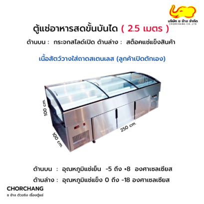 ขนาด : 250 x 100 x 100 cm. วัสดุ : body ภายนอกสเตนเลส (Stainless) ระบบ : คอมเพรสเซอร์ 2 ตัว แยกเปิดปิดอิสระ บน-ล่าง ระบบความเย็น : เดินท่อทองแดง Coperline อุณหภูมิบน : -5 ถึง +8 องศา (ไม่เหมาะสำหรับแช่ข้ามคืน) อุณหภูมิล่าง : 0 ถึง -18 องศา (แช่สต้อคหมุนเวียนวัน/วัน) กระแสไฟฟ้า : 220-240 V. 50 Hz. 3.32 แอมป์ 760 วัตต์ ค่าไฟ : ประมาณ 500-1,000 บาท/เดือน (อยู่ที่การใช้งาน) รับประกันคอมเพรสเซอร์ : 1 ปี ระบบความเย็น : 1 ปี