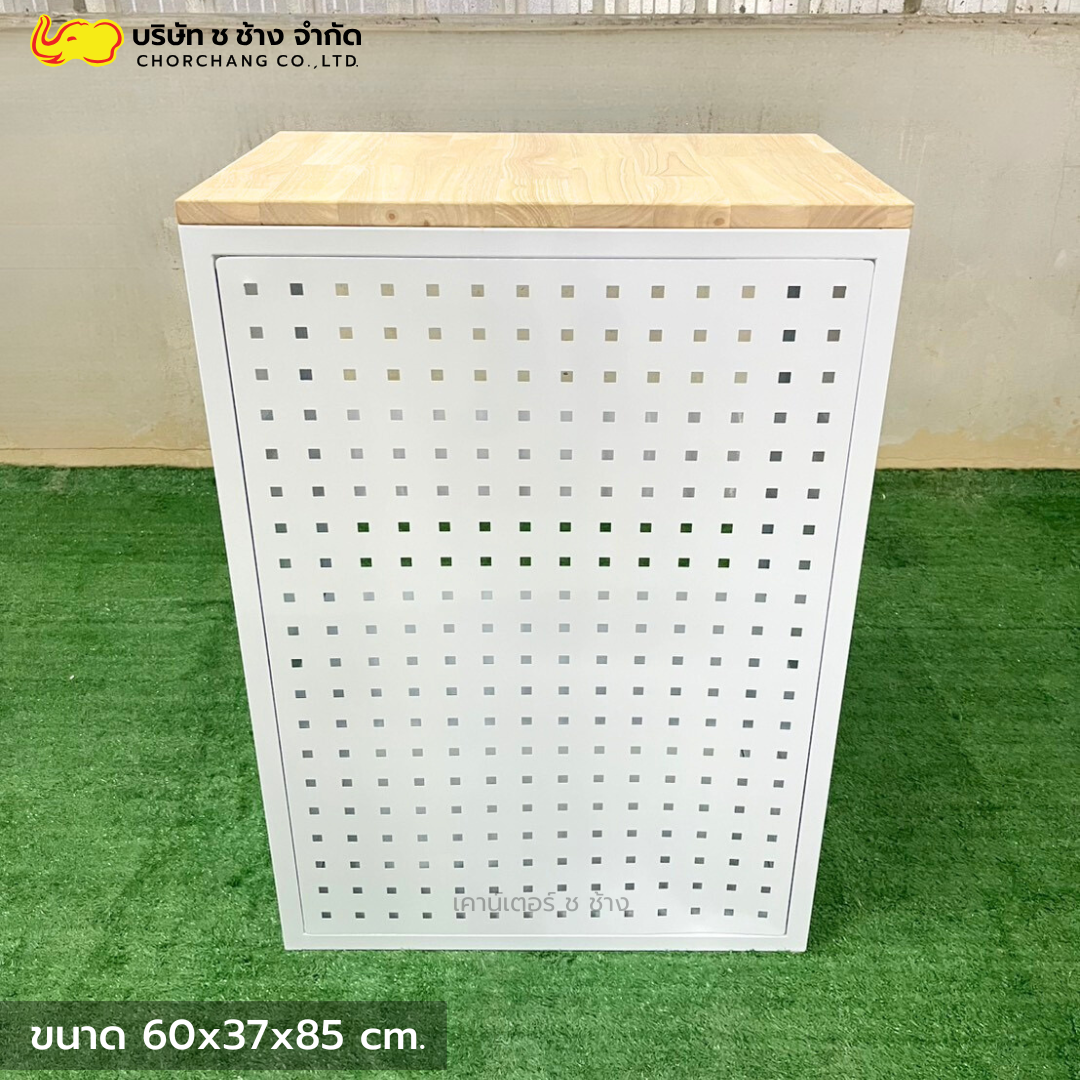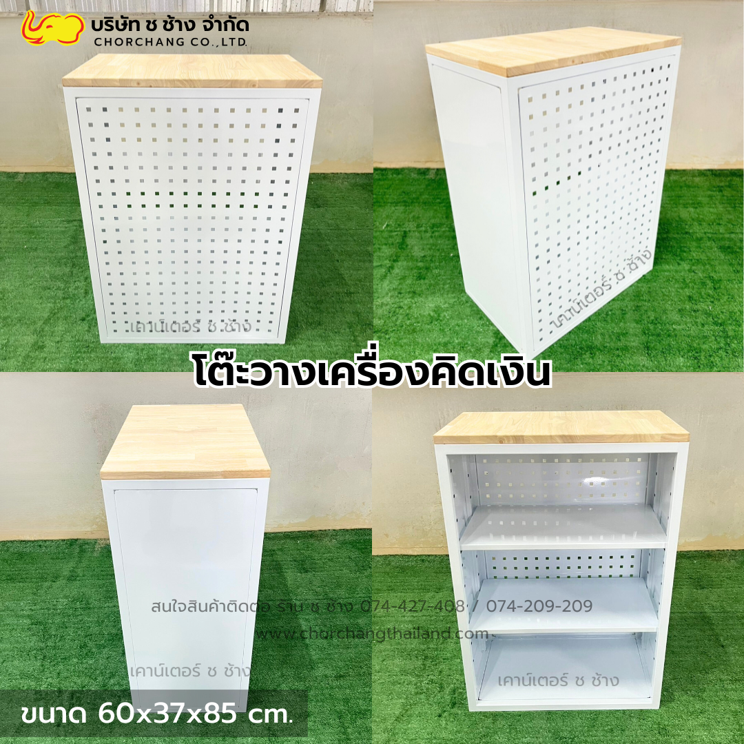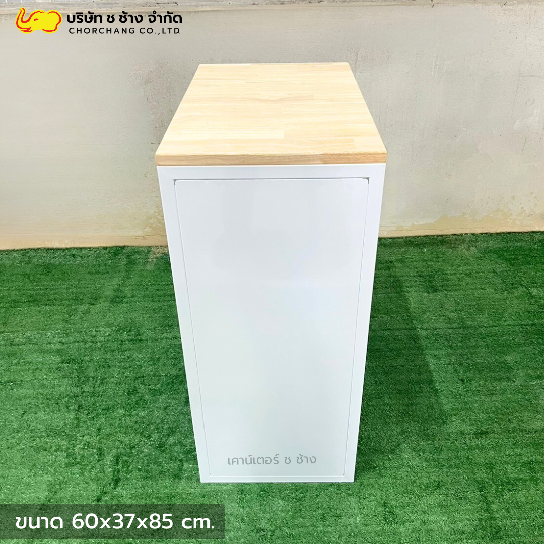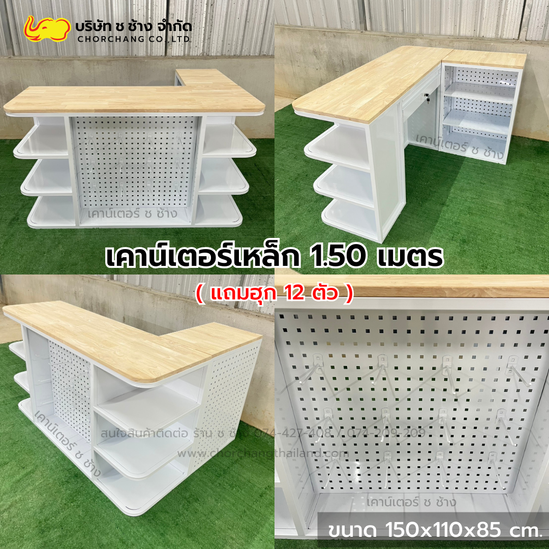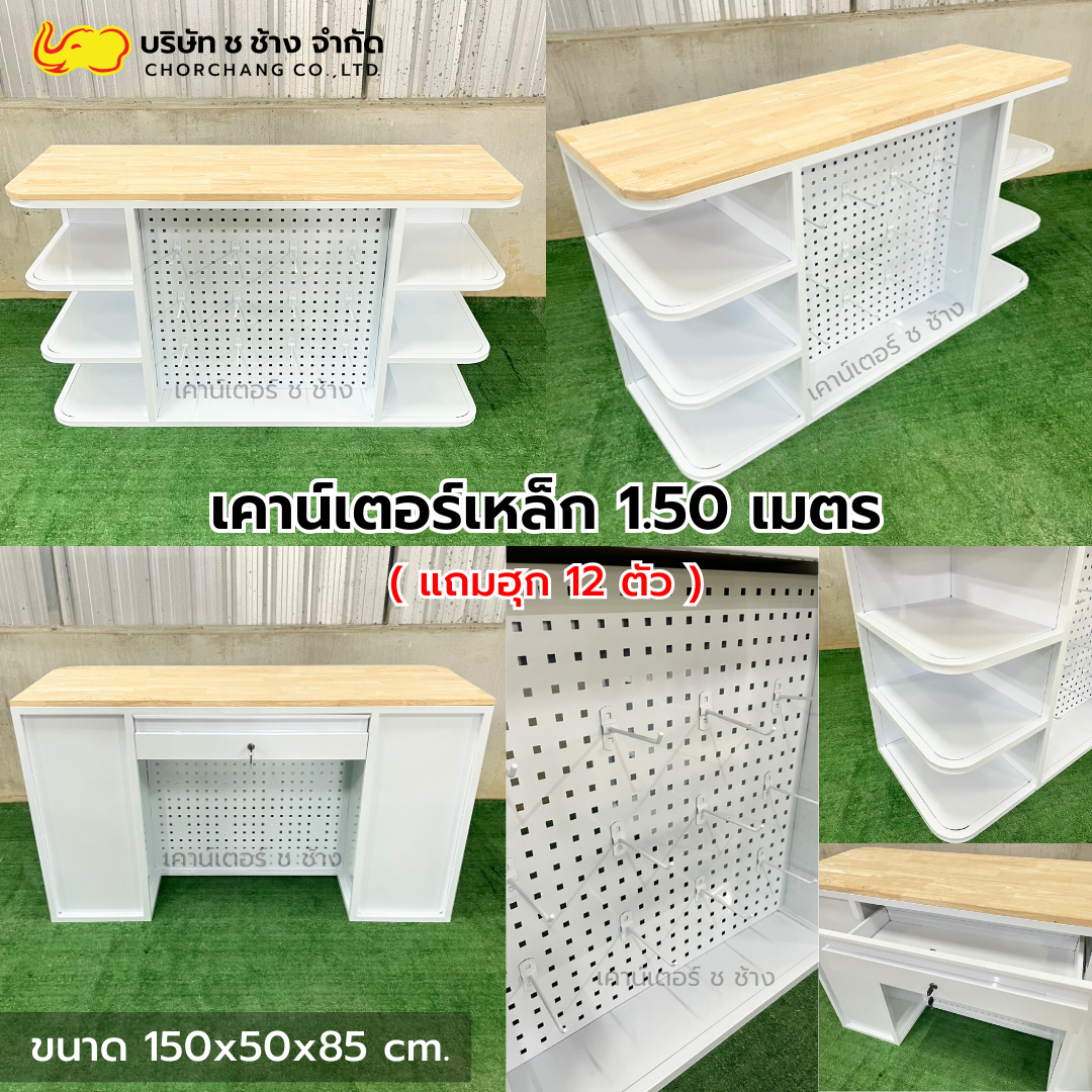 เคาน์เตอร์แคชเชียร์เหล็ก สีขาว ขนาด 1.50 เมตร ท็อปไม้แท้