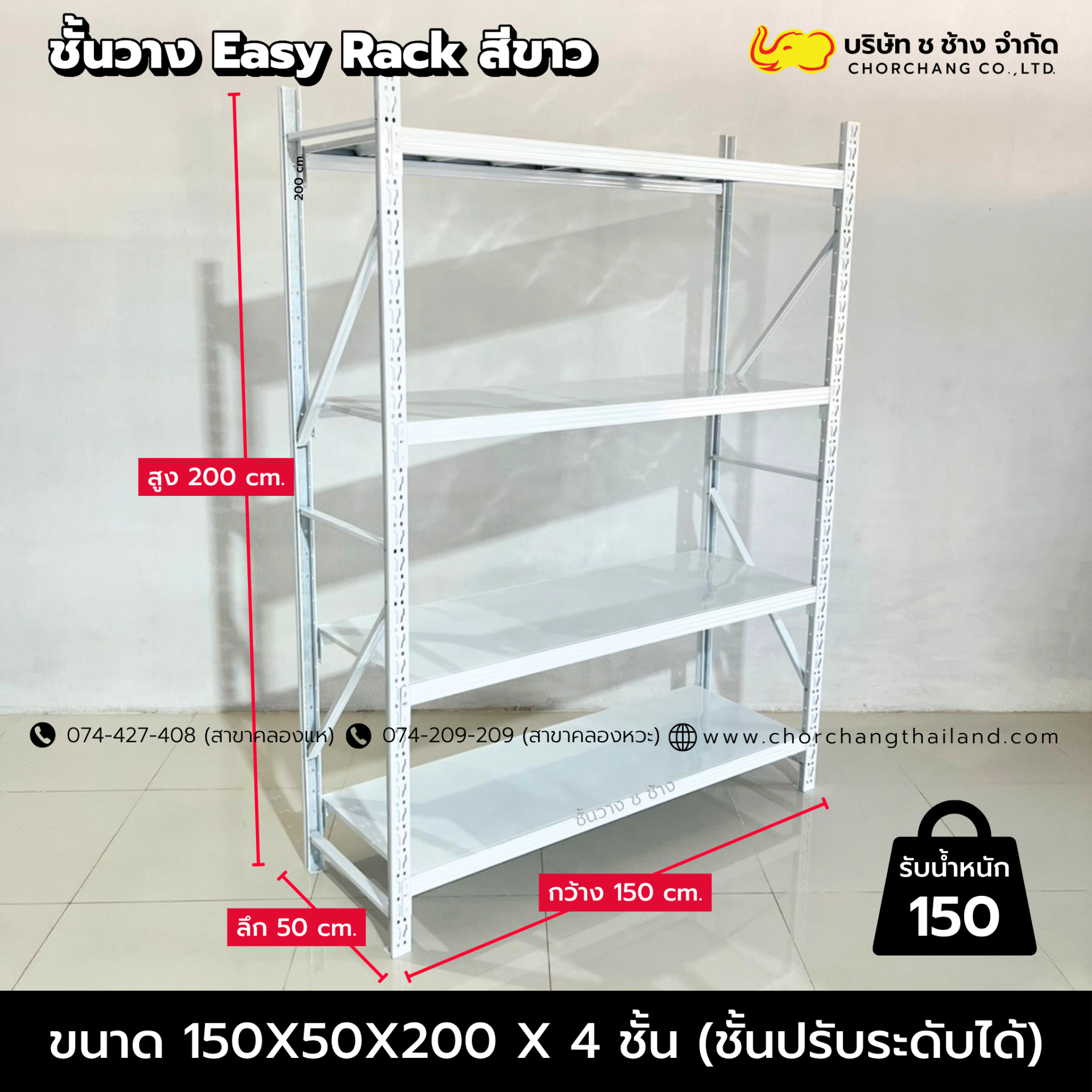 • สามารถรับน้ำหนักได้ : 100-150 กิโลกรัมต่อชั้น